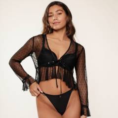 - zmysłowe w groszki bolerko z delikatnej koronki zdobione na mankietach i w pasie błyszczącą ozdobą
