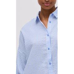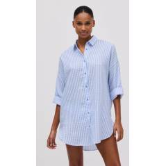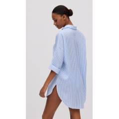 - fason dłuższej koszuli wykonany z teksturowanej tkaniny w paski